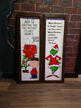 Each sign is meticulously crafted, fully sealed for durability, and comes equipped with all the necessary hanging hardware to make installation a breeze. Our signs are available in a variety of frame colors, including sophisticated brown wood, blonde wood, elegant black, festive red, candy cane (please add $10 for all candy cane frames) and classic green, allowing you to choose the perfect match for your existing decorations.